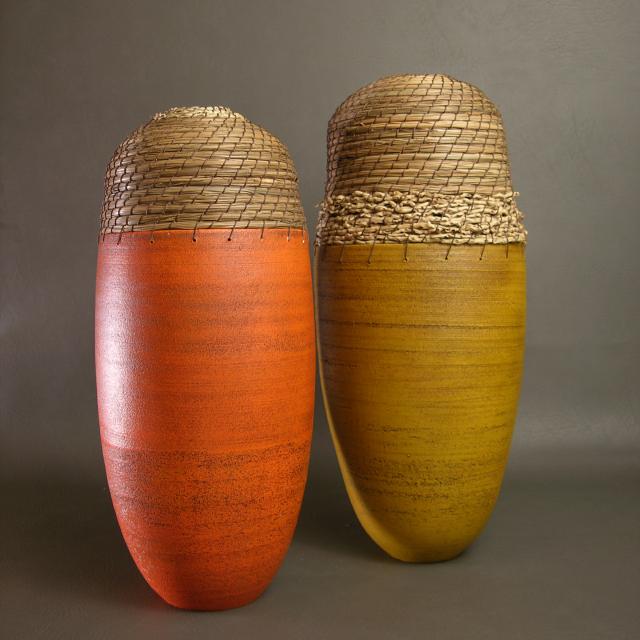 A passion for color, design and nature come together in this line of simple clean forms that have the rustic feel of the earth, from the clay and the pine needles. It is the coming together of two techniques to create distinctive pieces that blend with harmony.